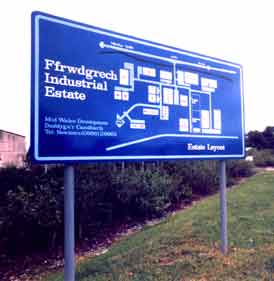A large map sign 3 metres x 1.5 metres. Easy to read from the drivers viewpoint, who then only needs to keep an eye out for the large factory numbers.