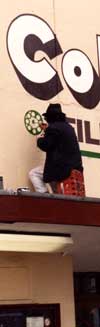 ![]() £5 for spotting himDo all signwriters take milk or beer bottle crates with them wherever they go? Not to social occasions maybe but pretty much everywhere else. I prefer to use Grolsch or Welsh milk crates to transport paint and brushes. The ingredients of the crate are emptied out on arrival at site and the empty receptacle is then used as a multi dimensional support for the body, it's always nearly perfect, never quoite right, or is that quoit or quite, the latter I think , too many games of quoites, gone to my head. You Aussies should play it and excell at that as well, notice signs.nis is always in gold position, how do they do that? Here in Wales it's on the decline but not so long ago every Welsh 4 year old. including my children, could beat any foreign national and that includes Americans as well as Australians. Back to crates, if not, it means that you have to sit on the ground or stand up. So modern ergonomic furniture fails again and i'm sitting cross legged. If other signwriters have found a better or more useful thing to sit on than a well proportioned beer or milk crate, then please email and we'll try it out and announce the results on this website. |